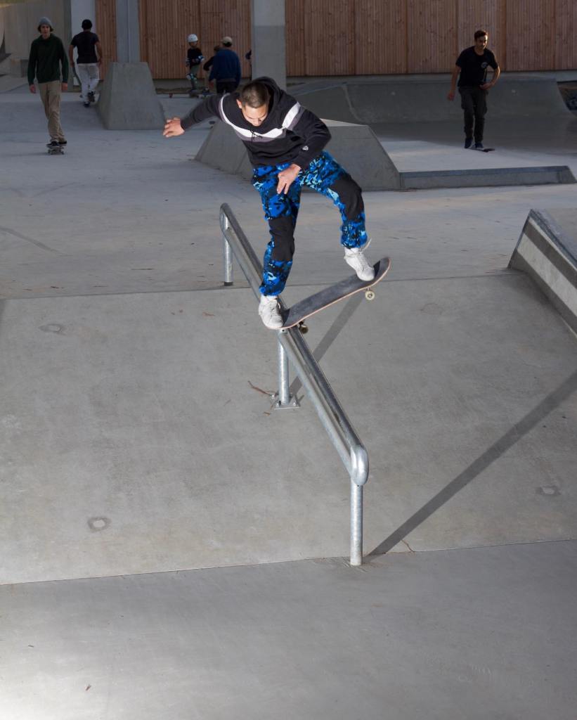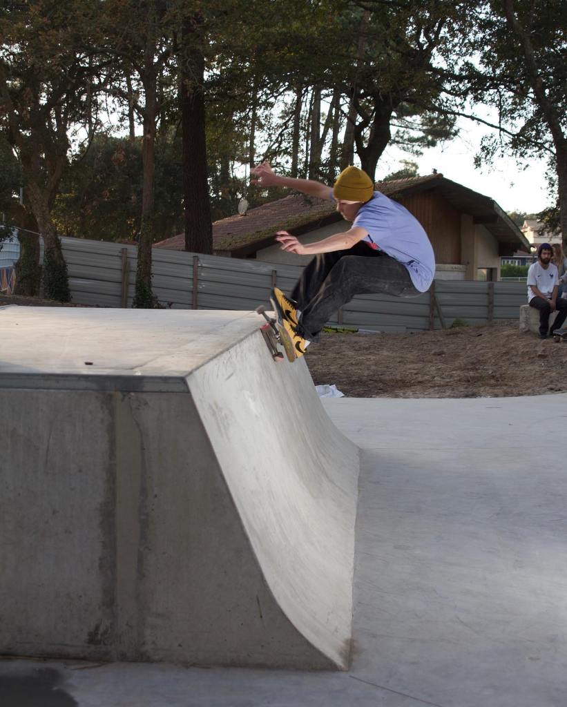 Le park en lui même n’est pas horrible mais ne fait pas rêver, on voit clairement que ceux qui ont fait ça ne skatent pas. L’ensemble est peu innovant, la partie street est peut être la moins ennuyeuse avec son couloir rempli d’enfants en trottinette entre lesquels il faut savoir zigzaguer. Le bowl, plutôt destiné aux BMX de par ses grosses courbes pas fun en skate (comparé au Penon par exemple qui lui est fait pour le skate), est très grand et vous fatiguera vite sauf si vous percutez quelqu’un en BMX justement avant d’être fatigué. Une petite portion du bowl bénéficie de margelle, comme s’ils avaient eu a peine assez d’argent pour faire ce petit bout ou alors ont-ils renoncé à faire tout le tour en margelle car il était plus facile de poser du coping banal partout. Voilà donc ce qui ne sera pas le park de l’année mais occupera clairement les jeunes en vacances. Si vous passez dans le coin allez y faire une session pour vous faire votre propre avis du park et commentez ci-dessous ce que vous avez aimé ou pas dans le park. Voici quelques photos du park (dont celles de Greg Poissonnier) :